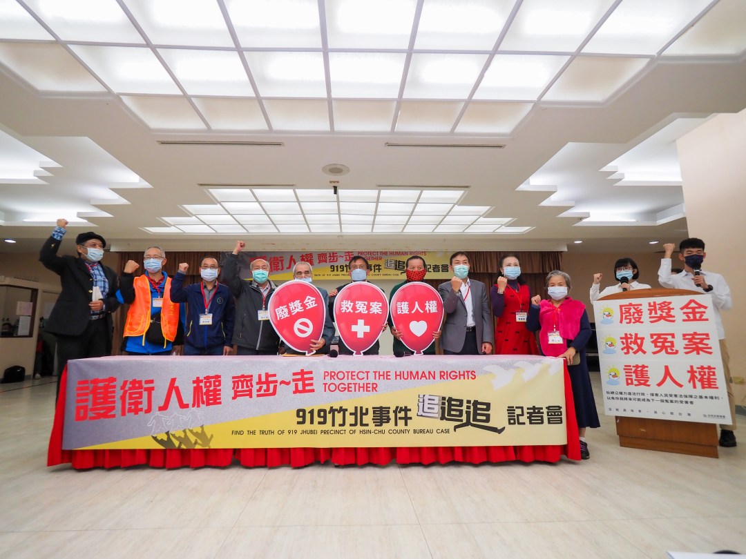 法盟舉行「護衛人權 齊步~走!919竹北事件追追追」記者會,主張廢獎金,打破假案自肥生態鏈,護衛人權,專家學者與議員代表、里長到場聲援。