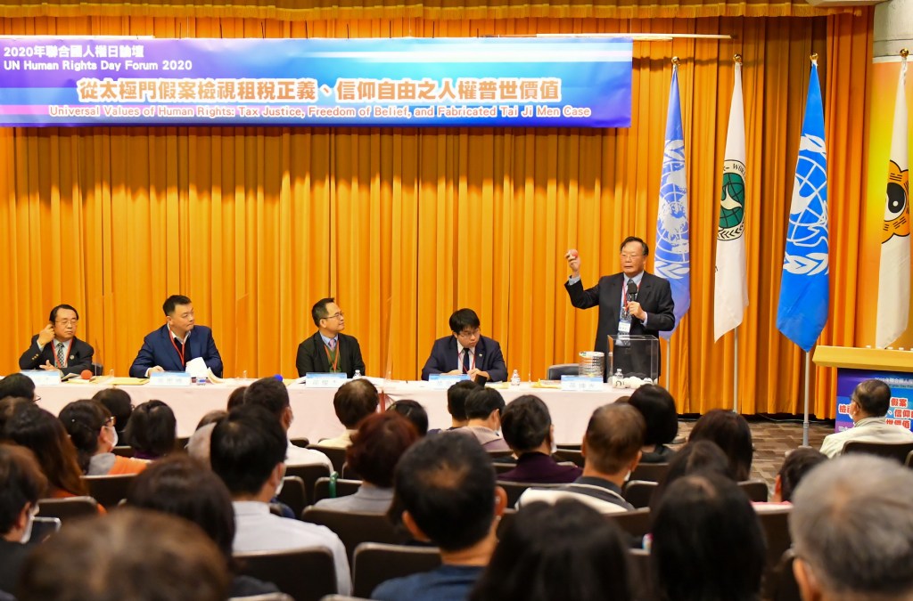 圖二:黃坤光12月10日於「2020聯合國人權日論壇—從太極門假案 檢視租稅正義、信仰自由之人權普世價值」中指出,太極門假案絕對是非法課稅。