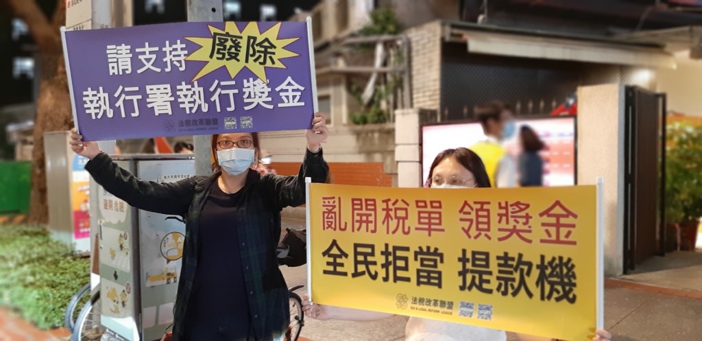 行政執行署每年編列1.9億執行獎金,有錢能使鬼推磨,執政當局因為有這隻會生蛋的金雞母來貢獻國庫,就對其諸多違法案件睜一隻眼閉一隻眼,甚至設法箝制民眾質疑的聲浪,為虎作倀嗎?919竹北事件當中執行官、警察、甚至檢察官違反常理的舉動,近兩個月在全省各地引起民代、法稅專家及聲援法稅改革民眾諸多的討論並呼籲相關單位深入調查,揪出違法官員,卻始終不見有關單位的實際行動。輔仁大學助理教授魏賜聰就點出,法律對人民與公務員懲處的比例偏頗,對公務人員的處罰僅是人民的十分之一,甚至更少。他呼籲政府體制的改革要靠全民,善良的人噤口不言,就是對邪惡低頭,如果善良的每一個人都願意站出來,願意發聲、願意批判,那這個國家就會有救;否則邪惡的壯大,任何一個善良就會被各個擊破,最後就非得向邪惡低頭。政府是公僕,其權力乃人民所賦予,如今人權迫害案件頻傳,更需社會大眾關注與追蹤,一起平反不公不義,為台灣的未來也為自己的下一代努力。