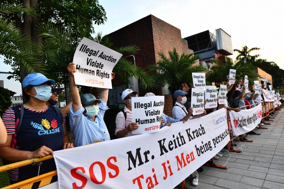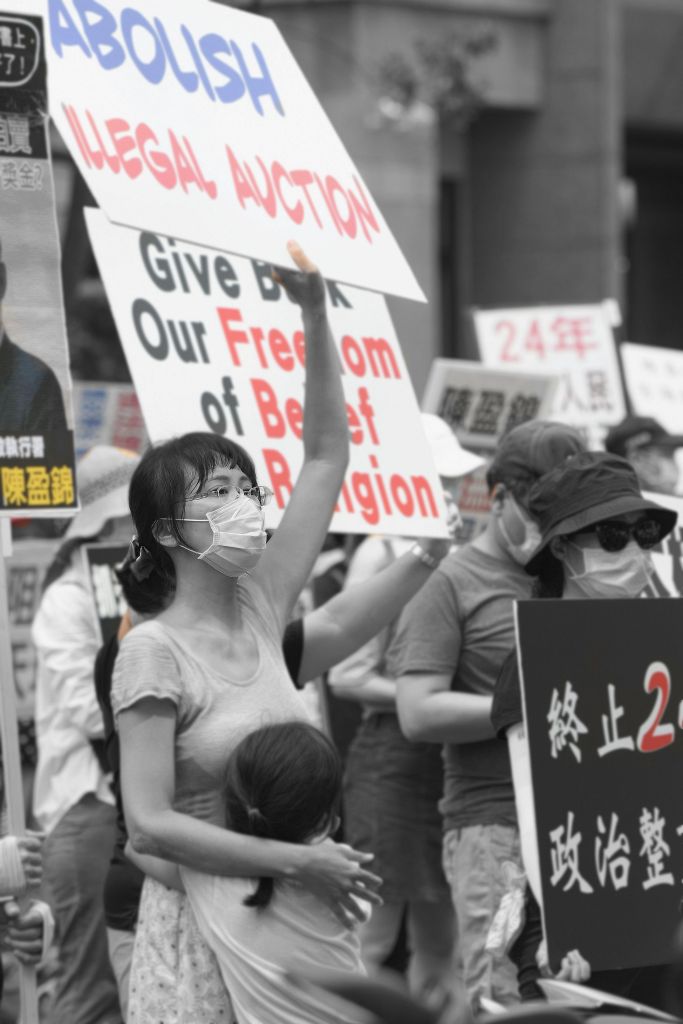 在最近的這些事件後,台灣街頭爆發了抗議活動。比利時無國界國際人權組織主席威利‧弗特雷(Willy Fautré)講述了竹北黃媽媽事件的感人故事,她是一位60歲愛好和平的家庭主婦,於2020年9月19日被捕並接受訊問,僅僅是因為舉著批評李貴芬(Ms. Lee Gui-fen)的牌子,李貴芬是沒收及拍賣洪博士財產的官員之一。