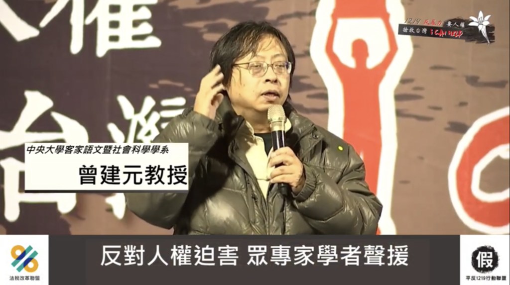 本身也是稅災戶的中央大學曾建元教授表示,今年是野百合運動紀念30週年,當年的大學生在中正紀念堂靜坐一個禮拜,讓國家從威權體制進入憲法之治。但30年後的今天,白色恐怖的遺毒還停留在官員的舊思想裡。他要向野百合並肩作戰的同志們、目前掌有公權力的立法委員喊話,希望他們「莫忘初衷」。曾建元強調,國家民主化最後一哩路,就是推翻威權時期遺留下來的制度遺毒,稅務獎勵金制度一定要廢除。希望監察院不要只是當「沒有牙齒的巧虎」,真正發揮監督糾舉的職能咬住貪官,為人民維護人權。