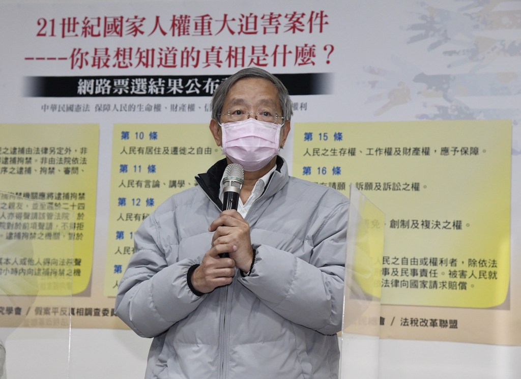 圖:2020年12月25日「21世紀國家人權重大迫害案件——你最想知道的真相是什麼?」網路票選結果公布記者會,臺灣財經刑法研究學會理事長、前台大法律系教授陳志龍徹底檢討臺灣五權機構,一一點出違憲之處。