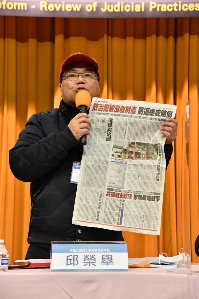 P2. 前國立臺灣大學法學院副院長邱榮舉呼籲,政府標榜轉型正義,已著手補賠償政治迫害受難者,更應平反太極門案這個人權、法律、政治案件。