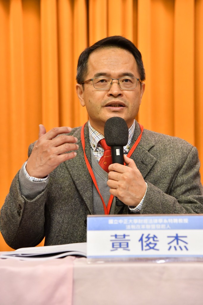 圖說:中正大學財經法律系特聘教授黃俊杰在「司法改革建言-從冤案及人權體檢司法」論壇中指出,如果國稅局及行政執行署連法院的提醒都不予理會,造成人民財產與精神上的巨大損害,國家人權委員會應糾正這樣的違失。