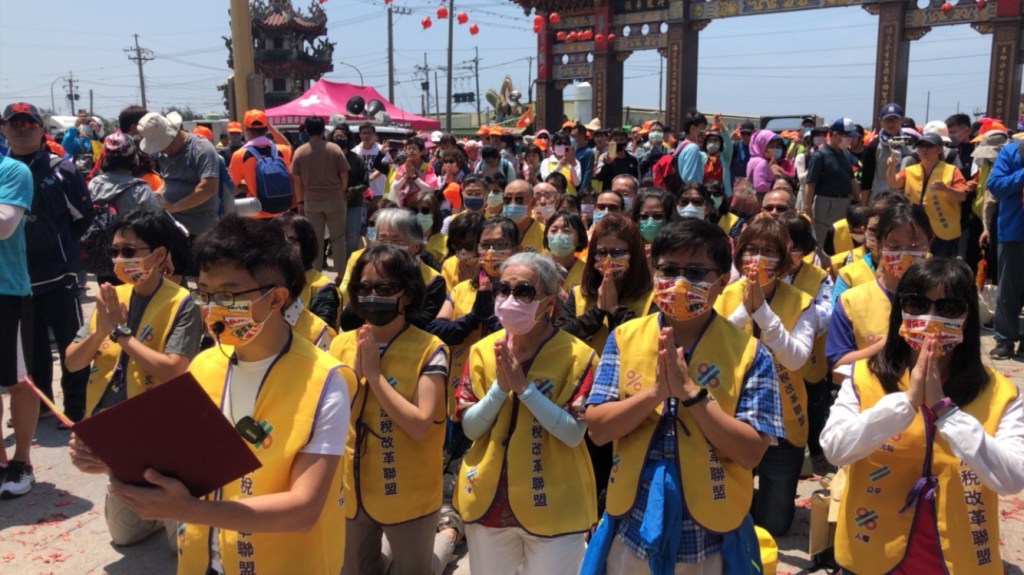 (記者蔡士瀛/苗栗報導)白沙屯媽祖4月17日起駕回鑾,進香隊伍馬不停蹄從雲林縣北港奔至彰化鹿港,隨香信眾超過10萬名,將北港朝天宮外圍擠得水洩不通,萬頭攢動的景象相當壯觀,來自全台各地的法稅改革聯盟志工們誠心跟隨,感恩媽祖慈悲護佑台灣,祈願政府以良心為本落實改革,健全法稅體制,讓人間悲劇不再發生。