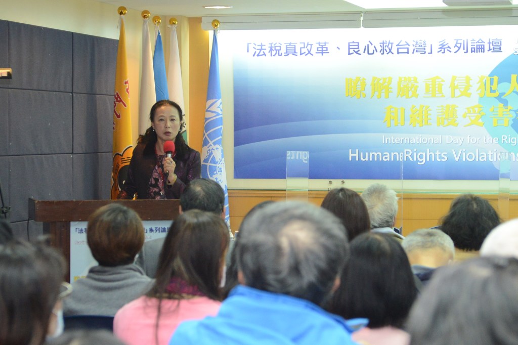 日前,聯合國/NGO世界公民總會等十多個民團在台大校友會館,舉辦「法稅真改革 良心救台灣」系列論壇—「聯合國瞭解嚴重侵犯人權行為真相權利和維護受害者尊嚴國際日」。邀請國內外長期關注人權保障的學者專家、受害者代表及青年學子參與座談。臺灣財經刑法研究學會理事長陳志龍提醒全國人民,政府任何的權力一定都要通過人民的同意,假案一而再重複發生,人民如果不站起來,政府就可能繼續欺負你。聯合國/NGO世界公民總會(台灣)人權委員會主任委員黃麗蓉律師呼籲,推動人權問責法,應先保護國內人民,國家不要做表面工夫。