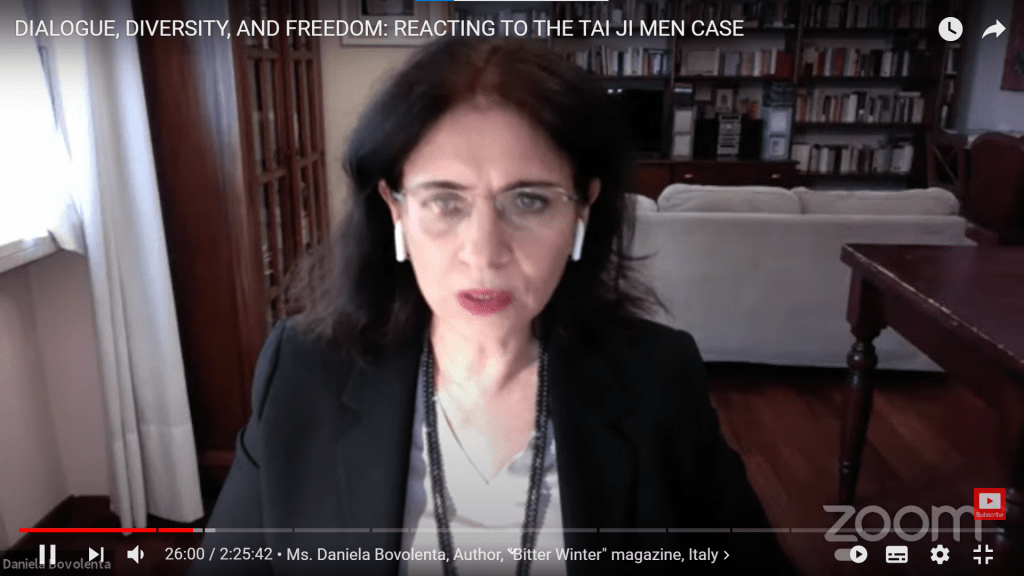 「國稅局的塔利班」或 「行政執行署的塔利班」對一個和平心靈修行團體長達25年的迫害,並大規模地以稅收作為歧視的工具,這在台灣這樣的民主國家是前所未有的。民主國家法律保障人民享有人身、信仰、財產等自由,在太極門案件中,這些自由卻被政府給剝奪,造成了極大的痛苦。太極門案在國際上極具示範性和重要性。Daniela Bovolenta強調,《寒冬》將持續進行這個正義之聲的發聲運動,不會沉默,直到案件解決!