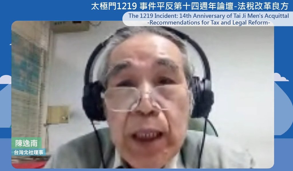 台灣北社理事陳逸南表示,最高法院在96年7月13日判決,沒有詐欺、無漏稅、無違反稅捐稽徵法,並確定敬師禮是贈與性質,依所得稅第4條第17款屬免稅所得,弟子互助代辦並非營利販售。與掌門人夫婦無關,但為何行政官署不撤?陳逸南認為與查稅獎金有關。陳逸南強調如果政府有良心,在96年三審無罪無稅確定,本來就該撤銷稅單,竟然讓太極門繼續走14年!