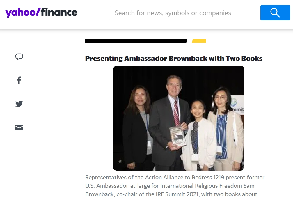 正義或許會遲到,但國際人權志工們相信,正義一定會降臨。Janis Chen分享,平反1219行動聯盟在國際人權學者推薦下,成為合作夥伴,參加這場於7月13日至15日在華盛頓特區舉行的國際宗教自由高峰會(International Religious Freedom SUMMIT — IRF SUMMIT 2021)。 高峰會是由美國國務院前國際宗教自由無任所大使 Sam Brownback 和 Lantos 人權基金會主席 Katrina Lantos Swett 共同主持,Sam Brownback於2019年曾經來台灣參加2019區域宗教自由論壇,對台灣的宗教自由十分推崇。