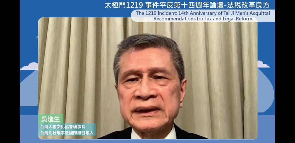 (記者張碧澄/台北報導) 聯合國/NGO世界公民總會等25個民間團體,7月13日於線上舉辦太極門1219事件平反第十四週年紀念論壇;被法學專家稱之為「⸢法稅二二八」的太極門案件,14年前的7月13日最高法院三審判決確定無罪、無欠稅、無違反稅捐稽徵法,然而,25年來因刑案衍生的稅案卻從未平息,太極門遭受非法課稅,2020年國稅局明知是違法稅單竟更與行政執行署聯手,違法強行拍賣太極門修行道館預定地,並收歸國有。此事件引起全球重量級專家學者關注,各界紛紛檢視台灣法稅問題並提出改革良方,一起為遭受迫害者發聲。