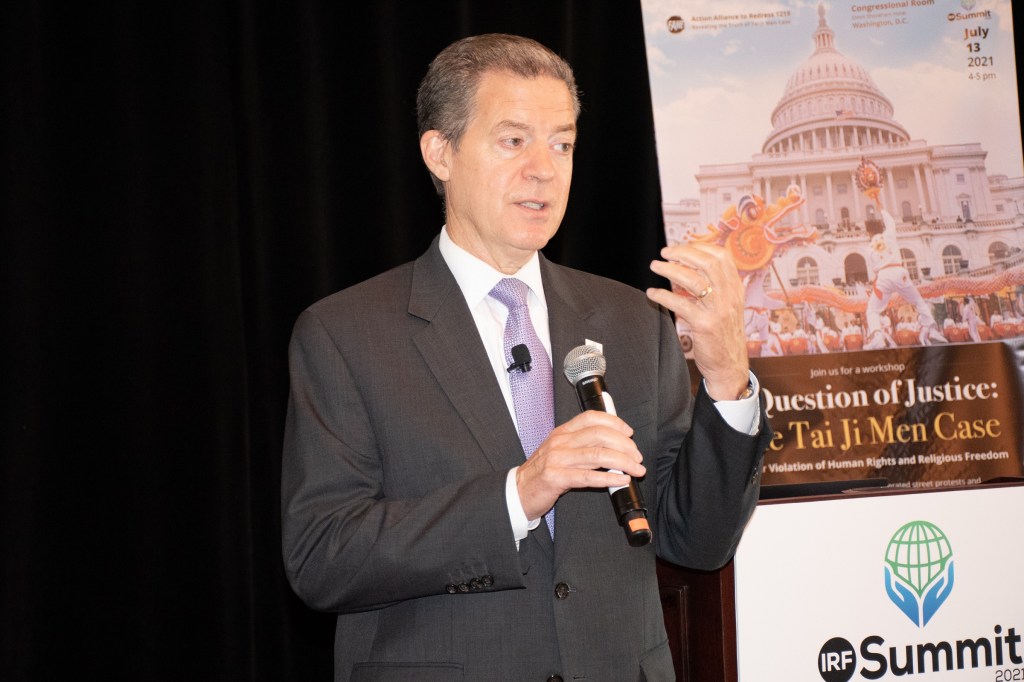 美國前國際宗教信仰自由無任所大使Brownback強調,宗教信仰自由是一項基本人權,沒有它,人類就不可能繁榮。更指出,每個人的宗教信仰自由在任何地方、任何時刻都應得到保障。「雖然不同的宗教信仰團體可能以不同的方式實踐他們的價值觀,但政府的作用是『保護一個人為自己的靈魂選擇自己未來之路的權利』。」他認為這種觀點也符合IRF高峰會的《宗教憲章》,該憲章強調「宗教和良心的自由」。Brownback在研討會開始前也在現場接受訪問,他說Massimo Introvigne教授是一位了不起的調查學者,撰寫台灣太極門事件的報導。Introvigne教授也是社會學家兼新宗教研究中心(CESNUR)創辦人,與他人合著一份關於太極門案的白皮書,並透過網路參加此次研討會。Introvigne教授表示,太極門在宗教文化中真的是生機勃勃、蓬勃發展,他相信台灣的朋友應該站在第一線,呼籲解決太極門案。Introvigne教授表示,太極門案「不是稅務案件,如果它是稅務案件的話,早就解決了,這是一個原則問題,也是對宗教信仰自由的考驗」。