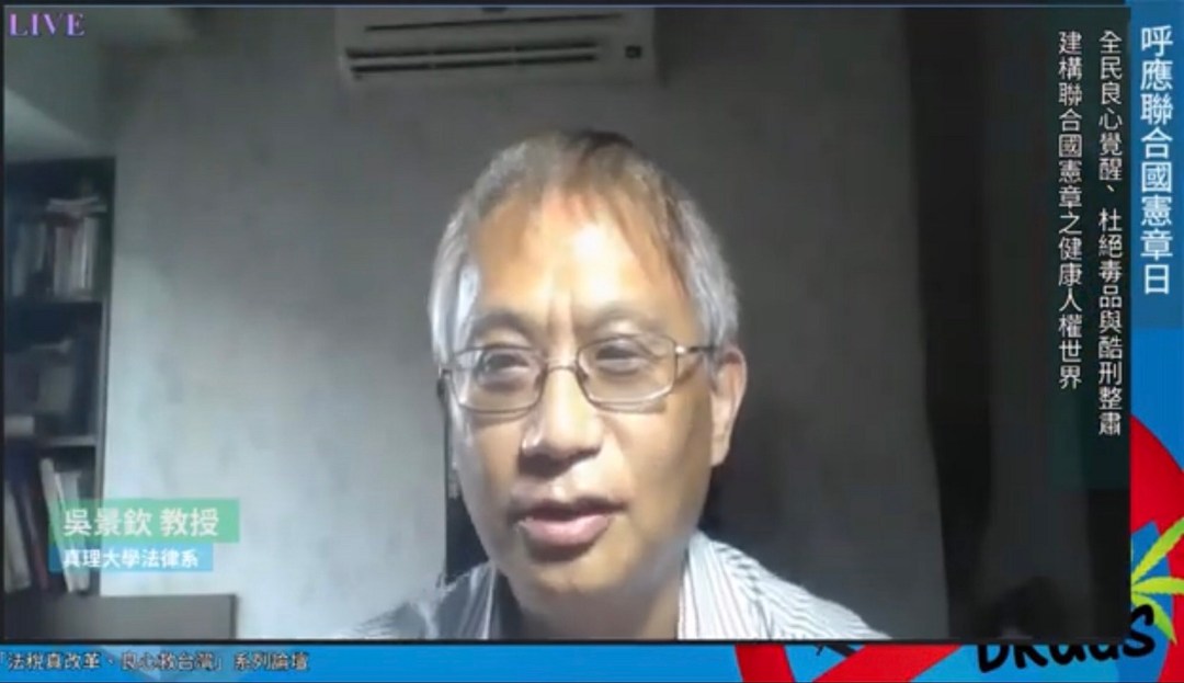 【記者林真真/台北報導】呼應聯合國憲章日,6月26日「全民良心覺醒、杜絕毒品與酷刑整肅,建構聯合國憲章之健康人權世界」線上論壇中,真理大學法律系副教授吳景欽直指,反毒和反酷刑都要注意偵查期間、審判中的正當程序,押人取供或沒有任何證據就起訴無辜被告,就是酷刑。要反酷刑,反制度的毒,執法機關沒有辦法打疫苗,針對執法體系的毒瘤,只能靠人民的覺醒去清除。