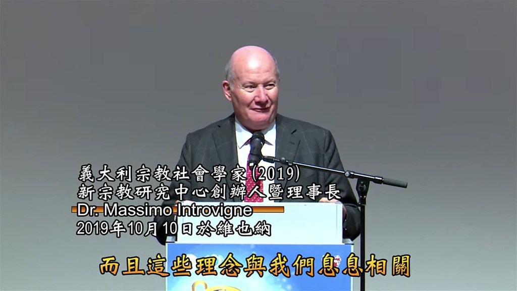 論壇播放包含四位總統及國際各界對太極門的肯定,表示太極門師徒是知行合一的實踐家,落實人道關懷行善天下。義大利宗教家也是《寒冬》總編輯Dr. Massimo Introvigne所說一個華麗馬車的故事,深具啟發意義:「佛陀結交了三個非常有錢被寵壞的年輕人。有一天,年輕人住的房子著火了,他們沒有警覺到房子著火了,他們會被燒死。」「佛陀想辦法要救這些年輕人,他知道跟他們講是沒有用的,這些年輕人聽不懂。所以佛陀送了三輛非常華麗的馬車,吸引這三個年輕人。這些年輕人沒有意識到房子著火了,但是他們喜歡華麗的馬車,所以坐上馬車而獲救。」Massimo指出:「我們的世界著火了,有很多火災跟濃煙,我們很有可能死亡,但我們沒有意識到這點。即使有人跟我們說,我們也聽不懂。」「這正是洪博士的使命,他們送給我們是馬車。我們看到了馬車,很棒的武術展演,很棒的歌曲,很棒的舞蹈。所以我們可以登上馬車,逃離這著火的房子,而被解救。」「讓我們一起坐上洪博士提供的馬車!讓我們一起坐上馬車而被解救!我相信這是國際良心日的主旨。」