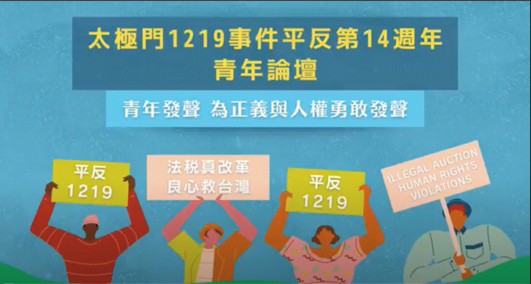【記者葉凌/中壢報導】東京奧運近期圓滿閉幕,「奧運稅」問題也被搬上檯面,政府的財稅能力受全民關注,舉凡民眾生活中的各種稅賦,究其根本,賦稅人權的觀念至為重要,一群青年於8月15日在線上舉辦太極門1219事件平反第14週年青年論壇_「青年發聲,為正義與人權勇敢發聲」,希望人人都懂賦稅人權,呼籲政府拿出良心,平反冤錯假案,還給人民公平、正義、安全的社會。此論壇為WPN世界民報、聯合國/NGO世界公民總會、聯合國/NGO世界公民總會(台灣)、平反1219行動聯盟、法稅改革聯盟、稅改青年陣線、太極門氣功養生學會及正大出版社等民團共同主辦。