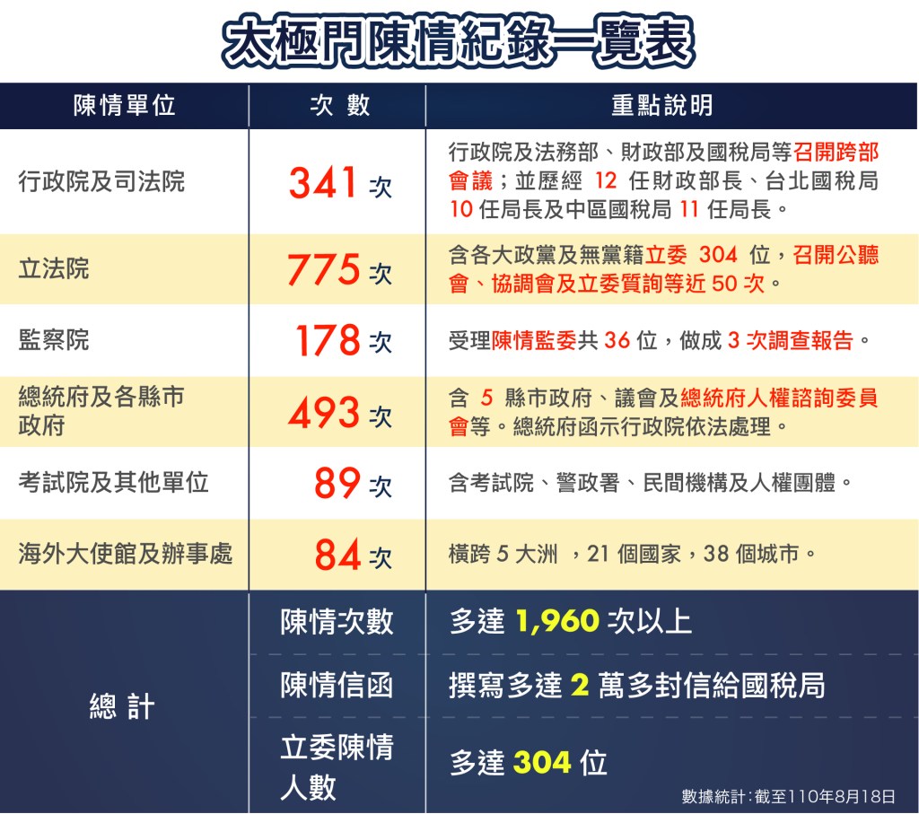 節目中公開太極門弟子過去25年所有一府五院的陳情紀錄統計,包括向304位立委、近2000次海內外各單位機關陳情,寫給國稅局2萬多封書信,陳情數量相當驚人。Judy表示,太極門25年依法走完所有救濟制度,基於法治與人權保護,一府五院都要平反太極門案,但卻奈何不了國稅局與法務部行政執行署在扯後腿,所以若有國際人權組織的力量,更能幫助台灣真正落實轉型正義,避免產生更多的假案受害者!而此時此刻台灣很需要國際盟友,去年政府還送口罩給許多國家,表達Taiwan can help心意!但看來台灣若要守護亞洲民主自由燈塔,Taiwan needs help!