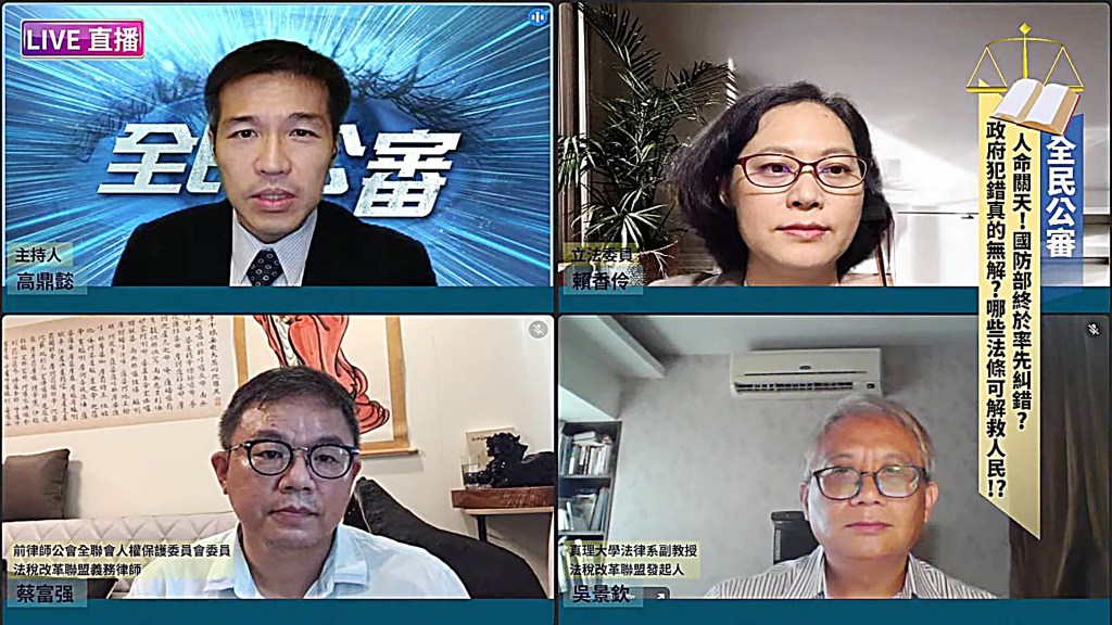 【記者張耘心/報導】日前國防部在上兵蘇詠盛被凌虐致死案中,勇於糾錯,將之前「因病死亡」撫卹的原處分廢棄,重新核定為「因公死亡」撫卹。在8月15日的線上直播《全民公審》節目中,即以「人命關天!國防部終於率先糾錯?政府犯錯真的無解?哪些法條可解救人民?!」https://youtu.be/XBB3AVJQ-Vw 為題,探討行政機關的自動除錯機制,能否符合人民期待,讓整個國家的行政團隊及質詢團隊能夠真正的維護人權?