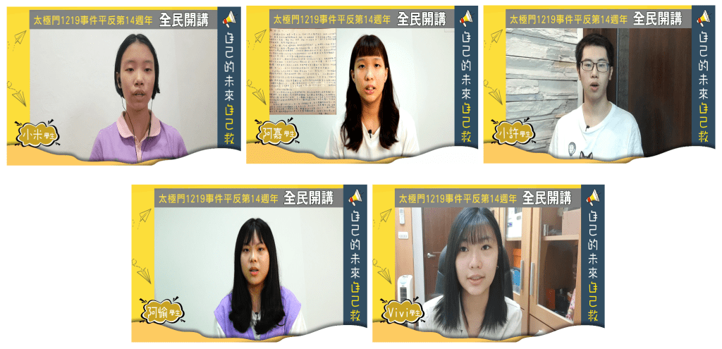 本活動由平反1219行動聯盟等8個團體共同主辦,於每週二、五19:30act1219.org YouTube 頻道播出,歡迎大家觀賞、點閱並分享。