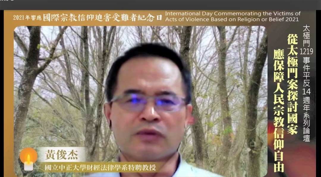 黃俊杰教授強調,台灣在施行國際人權兩公約後,於釋字第709號解釋第一次確認人民的財產權,不單純價值替換的補償,他還有一定的存續的保障,所以後來對文林苑還有苗栗的張藥房,我們都認為人民生存根基的這個土地和房屋,跟他的生命和家庭是永續的並存。因此,太極門因刑事冤案衍生出來的80〜85年度違法稅單,行政機關在自我更正了五個年度為零後,卻將事實認定錯誤、適用法律錯誤及枉法裁判的81年度稅單強制執行,這不只是單純的財產權的侵犯,他是文化宗教信仰的侵犯。