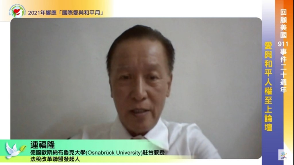 【記者洪大成/台北報導】2021年9月11日為美國紐約911恐攻事件屆滿20週年,令人省思「和平」得來不易,和平源自於人類心中的愛與彼此尊重、關懷、落實人權保障。當天19:00時由聯合國/NGO世界公民總會等民團舉辦「回顧美國911事件二十週年-愛與和平人權至上論壇」,以中英文開講,全程採直播方式(https://youtu.be/eIGY2nkW9x8),邀請到專家學者及曾親臨紐約目睹911事件的目擊者,對「和平與人權」提出寶貴建言。美國MNN電視台(Manhattan Neighborhood Network)也於20週年的今天,播放太極門師徒推動世界之愛和平文化以及修行人堅持真理的影片,並推崇太極門雖遭逢法稅迫害,仍致力於對世界和平的貢獻。