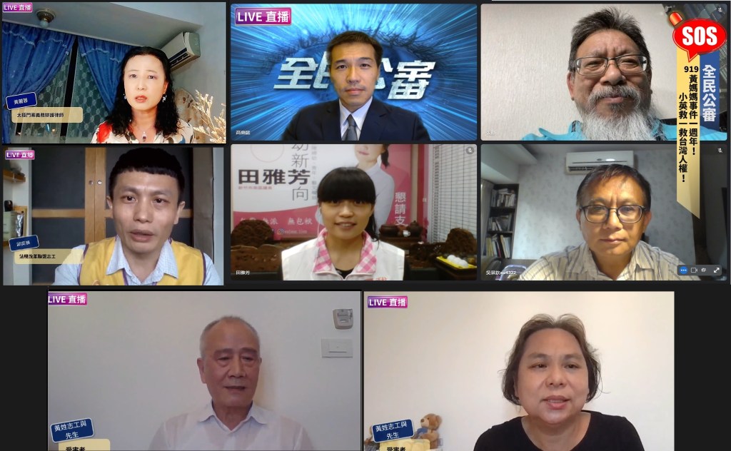 全民公審9月19日製播「SOS 919黃媽媽事件一週年!小英救一救台灣人權!」(連結https://www.youtube.com/watch?v=X5-vGuxOHRE),邀請專家學者分析這起公權力迫害背後的真相,受害人也現身淚訴這一年來的煎熬,依然無法正常生活、入眠!並呼籲蔡英文總統救救台灣言論與信仰人權自由!