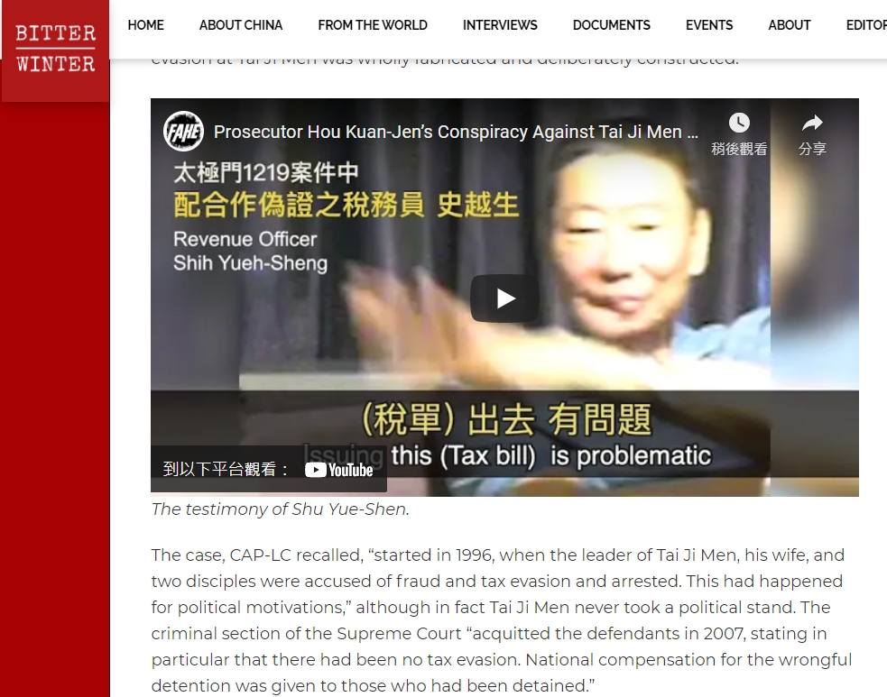 延宕25年的太極門假案衍生出「無中生有」的稅單,涉及檢察官和國稅局「套招」,製造假證據來設計構陷太極門,無視法律,公然違法搶奪民産、造成人民財產的損失、人格名譽的損害,已經觸犯刑法第129條違法徵收罪,違法官員未被究責,至今卻持續迫害人民,不只嚴重浪費國家公帑、司法資源、行政資源及龐大的社會成本,更嚴重侵害人權,傷害人民、傷害國家。國稅局、財政部凌駕一府五院,藐視司法、破壞朝綱,嚴重違反憲法、國際人權兩公約及世界人權宣言,利用國家公權力霸凌人民,迫害宗教自由、信仰自由及文化生活權之基本人權等,不只國內專家學者討論,也受到國際社會矚目,甚至引用台灣太極門案,在聯合國人權理事會譴責針對少數宗教團體修行房地產的襲擊。顯示太極門假案迫害人權的嚴重性,台灣政府務必立即解決延宕25年的太極門假案,嚴懲違法官員,並歸還太極門的修行聖地。政府有責任維護台灣社會的公平正義、真正落實民主法治,別讓 Taiwan Can Help 成了只是曇花一現的口號!