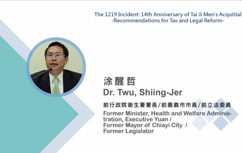 前立法委員暨前行政院衛生署長涂醒哲表示,2010年6月17日他擔任立法委員時,在立法院舉行的「保護租稅人權 終結萬年不死稅單」公聽會上說:「太極門稅務冤案動搖五院、動搖國本!」同年10月21日質詢財政部長李述德、台北國稅局長凌忠嫄及中區國稅局長鄭義和時,他直指稅務人員裁量權過大、藐視司法,竟還說「法院講的不算數啦!」涂醒哲指出,國稅局對監察院、司法院不尊重,為什麼連立法院院長召集的公聽會決議也都不尊重?他沒想到現在已經2021年,還在討論太極門案。