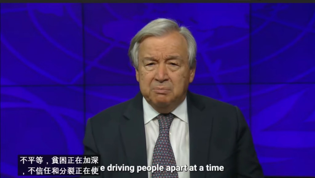 聯合國秘書長António Guterres安東尼歐˙古特瑞斯於致詞影片中表示,今年的國際和平日正值人類面臨的危機時刻。COVID-19 顛覆了我們的世界。衝突正在失控、氣候緊急情況正在惡化,不平等和貧困正在加劇,而在比以往任何時候都更需要團結合作之時,不信任和分裂正使人們疏離。作為一個人類大家庭,我們面臨一個嚴峻的選擇—和平或永久的危險,而我們必須選擇和平。這也是為何今天呼籲24小時的停火,而通過每天為持久、永續的和平而團結努力。我們需要與自然和平相處,以治癒地球。和平並非天真的夢想,而是黑暗中的光明,引領人類走向唯一一條美好未來的道路。