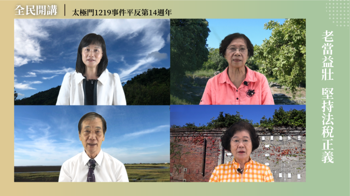 (記者張馨勻/台北報導)台灣已邁入高齡社會,年長者除了是家中一寶,更是晚輩的人生智慧寶典。呼應政府訂定九九重陽節為敬老節日,提醒為人子女要懂得及時行孝並重視家中年長的長輩,平反1219行動聯盟響應國際老人節主辦全民開講系列,邀請一群資深阿公阿嬤,以「老當益壯 堅持法稅正義」為主題(https://www.youtube.com/watch?v=Z4Sn6-A6fWo&t=923s),現身說出自己經歷25年國家法稅迫害的過程,透過監察院認證台灣重大人權保障指標性案件-太極門冤錯假案,資深長輩說出自己面對公權力霸凌的感受,呼籲執政高層落實轉型正義。
