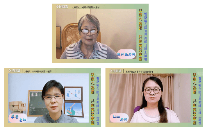 【記者王靖/台北報導】聯合國教科文組織於今年【世界教師日】以【教師是教育復甦的核心】為主題,期盼為全球復甦進程做出全面貢獻。10月5日世界教師日當天,平反1219行動聯盟頻道全民開講https://youtu.be/u1pSh7_SeQk,特別邀請老師們以太極門案為例,齊聲呼籲違法官員及政府高層以良心為師,知恥改過,還人民清白以及接受應有的懲處!為自己的將來,留下好的名聲。