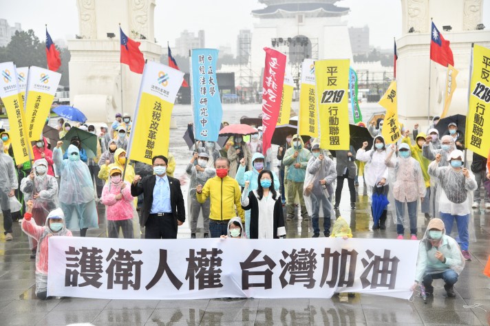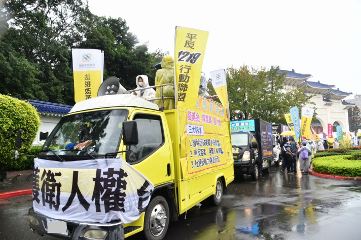 【記者黃亭棋/台北報導】10月24日是聯合國日,10月25日是台灣光復節。法稅改革聯盟、平反1219行動聯盟於10月23日早上十點冒著低溫風雨,於自由廣場發起「2021響應聯合國日-正義之聲捍衛人權台灣加油行動」https://youtu.be/ab4ja3nWN1Q,法盟指出,光復是指恢復或收回的意思,人權本是所有人與生俱來的權利,台灣被譽為亞洲民主燈塔,然而卻發生長達25年四分之一世紀的人權迫害案件──太極門假案,過程離譜至極,甚至引起國際人權專家群起聲援。太極門案是台灣指標性案件,還有無數法稅受災戶無法申冤,藉由揭發此案呼籲台灣政府勿違背聯合國憲章,放任官僚迫害人權、搶奪民產,人權不能淪為口號。法盟志工出動宣傳戰車、機車連遊街,一路上以播放影片、演說、廣播等方式兵分六路繞行台北市,同時數百部車輛在全國各縣市同步宣傳,全面公開爆料違法官員的惡行惡狀,誓言要真正光復台灣的人權。