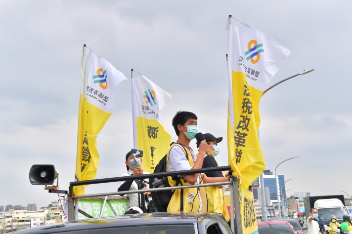 法稅改革聯盟青年志工於宣傳車上宣導法稅正確知識,並指出,當今法稅亂象,包括國稅局超過9000條的解釋函令沒有法源依據,都是國稅局自己說了算,迄至109年6月19日,司法院大法官792則解釋中,與稅有關的有131則,其中有56則法律及解釋函令被宣告違憲!台灣稅制長久以來停留在戒嚴時期,稅務人員只要開稅單也不須舉證,就可以用扣押財產、拘提管收、限制出境等手段,逼迫人民繳稅,嚴重侵害憲法保障人民自由權、生命權及財產權,也製造許多稅災案例。