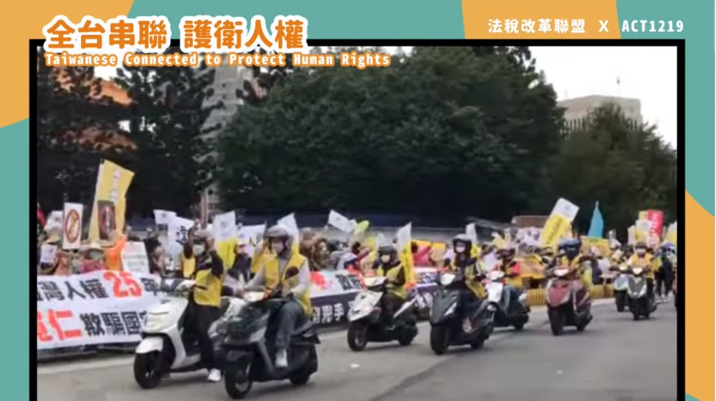 【記者張馨勻/台北報導】「全台串聯 護衛人權」運動在光輝十月的最後二個週末假日轟動全台,以號角聲來喚醒台灣人民的賦稅人權。來自北中南的法稅改革聯盟志工們,接續上週的全台景點的戰車連、機車連、布條、舉牌大串聯,再次將稅災戶的故事傳遍各地。平反1219行動聯盟、法稅改革聯盟、稅改青年陣線以主題「全台串聯 護衛人權」https://youtu.be/HxbkOflTIKM於網路直播各地現場Live。南港區聯成里鮑黎登里長特地前來表達支持,他提到,做人一定要憑良心來做事,法稅改革成功才能救國、救民,救我們的下一代。