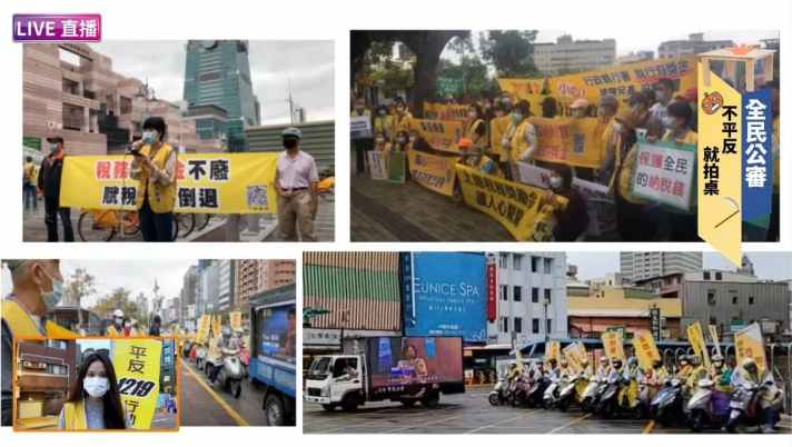【記者張若渝/報導】在光輝十月下旬,已連續兩週在台北、桃園、新竹、台中、台南、高雄等地都有法稅改革聯盟志工用宣傳車、機車繞行或人力舉牌、拉布條的方式來表達法稅訴求。線上直播節目《全民公審》10月31日播出時適逢萬聖節,應景推出「不平反,就拍桌」主題https://youtu.be/ELL6x1fIVsA,除了呼應法稅改革聯盟志工,也希望讓潛藏在財稅官僚體系中的鬼怪現形。