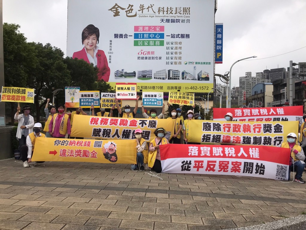 法盟志工江小姐表示,財政部國稅局每年編列1.3億稅務獎勵金、執行署1.9億獎金,都是沒有法源依據的,早在2013年,立委主張刪除財政部稅務獎金,時任財政部部長張盛和極力反對,理由是「待遇不高,不足以養廉」,張盛和在太極門案件中,為圖獎金達執行目的偽造文書,用立可白塗改倒填發文日期,盜賣盜領民產,之後承審法官揭發,才緊急以「退稅」名義,返還違法執行款項,但是獎金已入袋!退稅全民買單!為民服務的公務人員,變成為錢服務。當官員行政權過大,自己的獎金自己編列,錯誤的政策不用承擔責任,甚至盜賣人民財產。台灣還是民主法治國家嗎?呼籲全民一起廢獎金、救冤案、護人權。