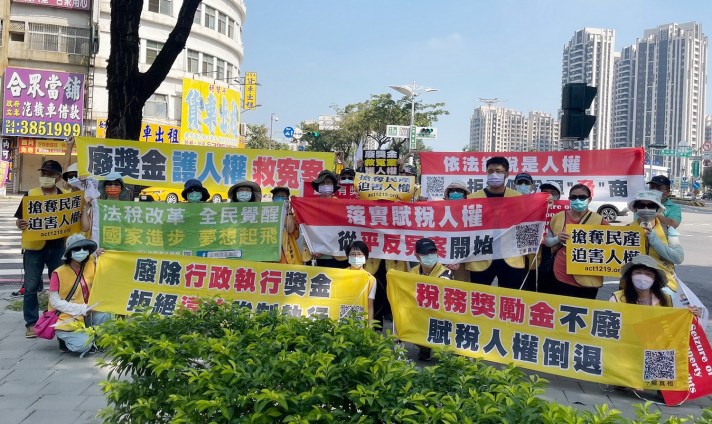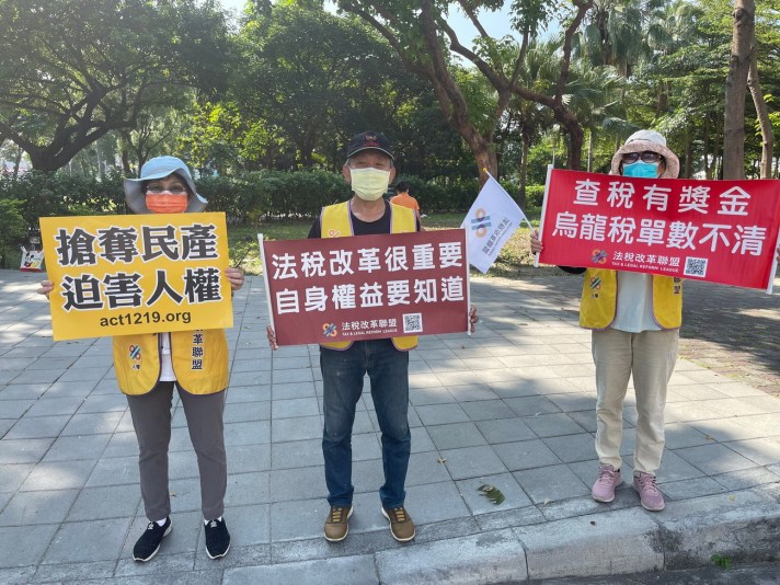 (記者田翊秀/高雄報導)行政執行署去(2020)年新增1431萬件欠稅欠費強制執行案件,20年來暴增7.5倍!台灣稅災氾濫,到底是台灣人愛欠稅欠費,還是獎金誘使冤案變多?11月7日法稅改革聯盟及平反1219行動聯盟於全國各縣市重要地點舉辦大規模「廢獎金、救冤案、護人權」全台串聯行動,號召全民一起成為法稅改革的推動者,守住自己的血汗錢!呼籲民眾別再讓自己的權益睡著了!高屏地區民間團體以宣傳車、機車、發傳單、拉布條、徒步行腳等方式,在重要道路進行各種宣傳行動,訴求廢除國稅局稅務獎勵金與行政執行署執行獎金、平反稅務冤案、嚴守財政紀律,要求政府真正落實賦稅人權及法稅改革正義,呼籲「稅改救台灣,全民站出來!」