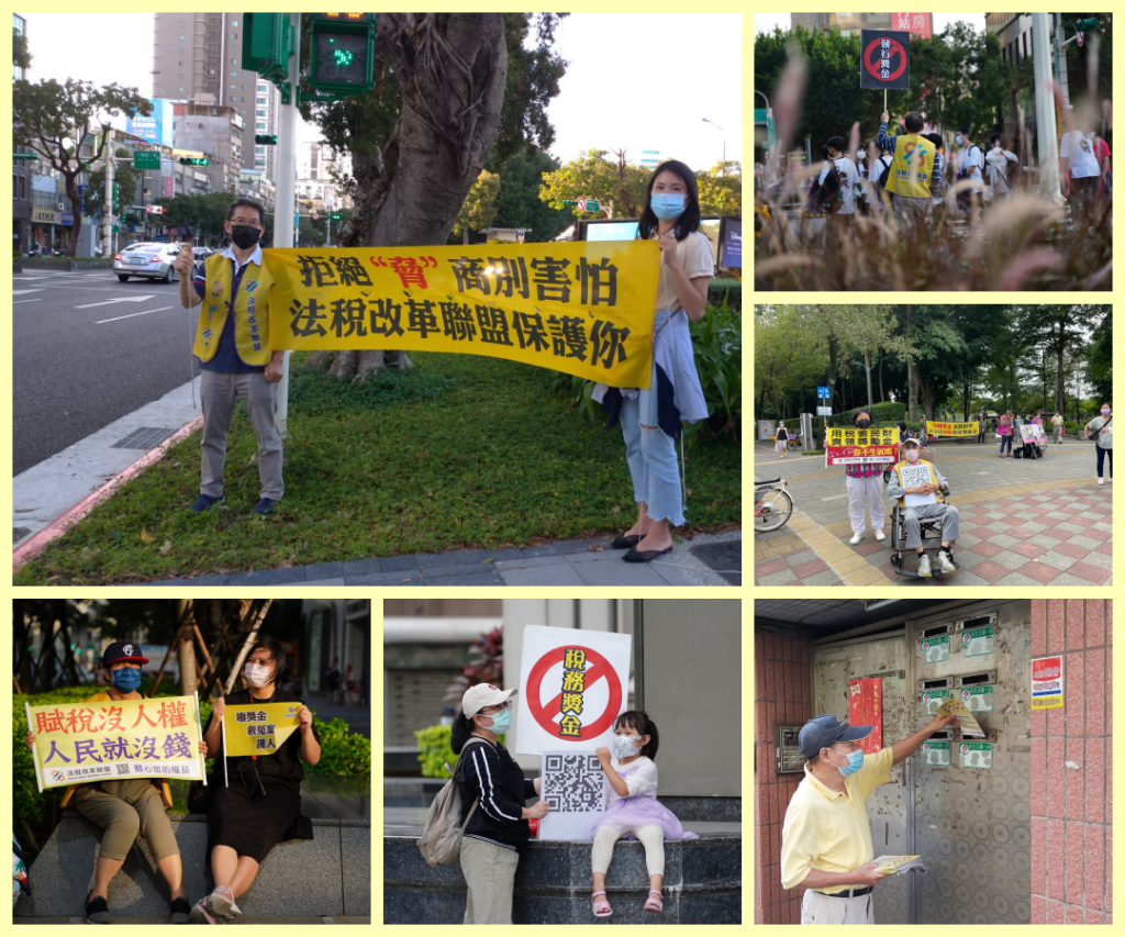 在大安森林公園進行法稅宣傳的志工林小姐說,她遇上一對來捐血的夫妻,妻子在了解稅務人員查稅有獎金,和執行署有執行獎金可領時,義憤填膺的向志工索取40張法稅傳單,表示要分送友人一起支持廢獎金,為護衛人權盡一份心力。