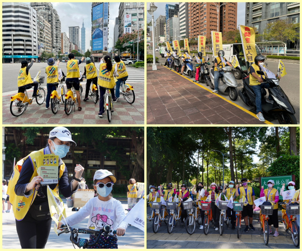 【記者唐均育/台北報導】財政部每年編列超過1.3億元於法無據的稅務獎勵金,執行署執行人民財產也有執行獎金可領?領人民納稅錢的公務人員,可從搶奪人民財產獲取獎金,已激起民怨。法稅志工近幾年走上街頭宣導賦稅人權,除機車繞行、舉牌、拉布條等方式外,11月6-7日兩天,黃背心志工也團騎上路,呼籲廢獎金、護人權,成為台北街頭的風景,讓更多民眾了解台灣沈痾的法稅制度,希望透過全民的力量督促政府改進。