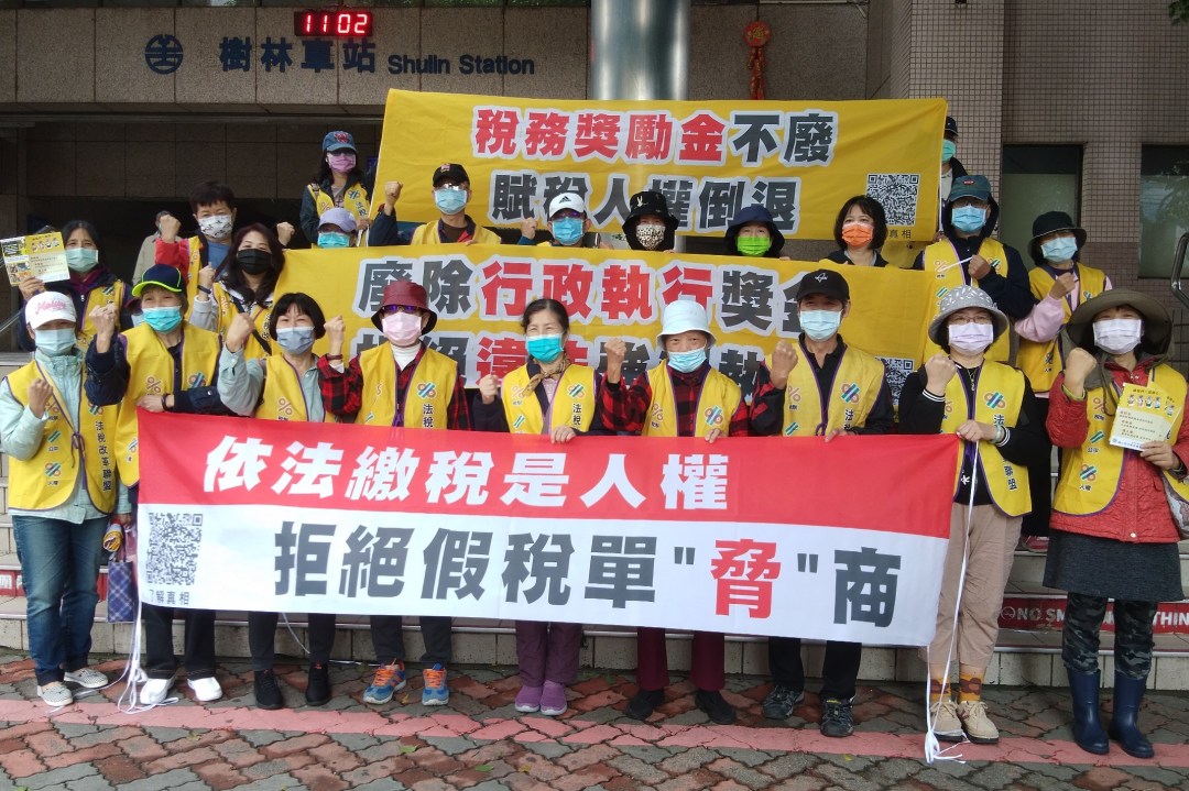 【記者 黃稚丞/新北報導】11月13日週末早上,天空陰陰的,不時吹來陣陣冷風,四十來位法稅改革聯盟的志工,不畏天寒,趁著週末假期,在人來人往的樹林火車站前,透過標語、布條,以及法稅常識的開講,希望喚醒全民重視賦稅人權。另外,還有機車連隊,在宣傳車的引導下,繞行火車站附近大街小巷。志工們強調,法稅的火苗,沒燒到自己的頭上,也許會覺得事不關己。但是,只要了解「法稅228」太極門假案的真相,就會知道,在違法官員的搧風點火下,假的都可以變成真的!希望大家一定要關心與人民息息相關的法稅問題。