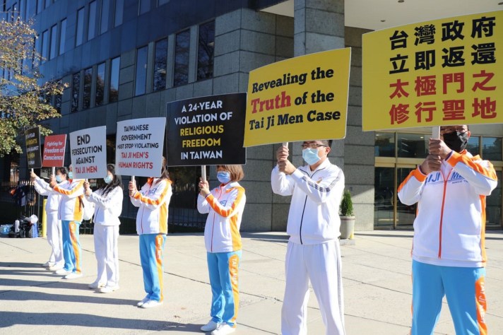 在現場抗議的太極門弟子Alan Shih表示,「我們要讓世界看到,台灣政府允許流氓官僚迫害我們25年。我們呼籲蔡總統認真面對這些問題。台灣政府必須糾正錯誤,解決我們的案子,立即歸還我們的修行聖地!」