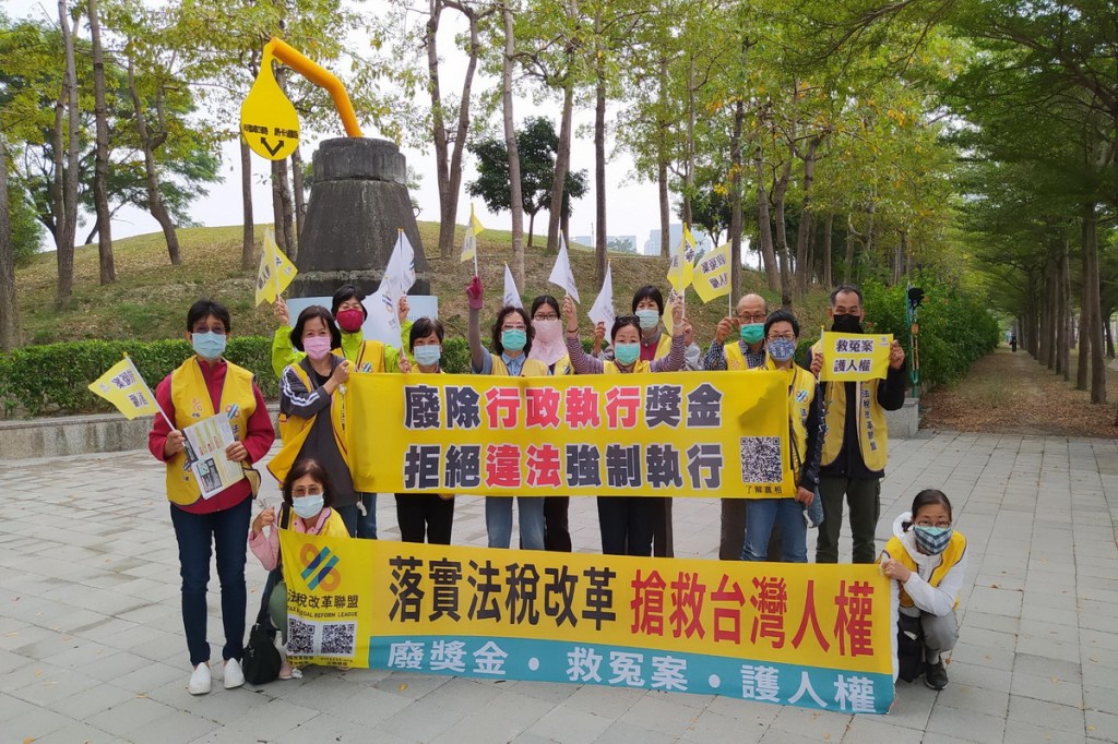 圖一:11月28日民團舉辦大規模「廢獎金、救冤案、護人權」全台串聯行動,號召全民一起成為法稅改革的推動者。