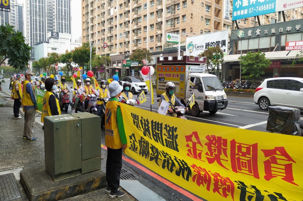 圖二:法稅改革聯盟及平反1219行動聯盟於高屏地區,以宣傳車、機車、發傳單、拉布條、徒步行腳等方式,在重要道路進行各種宣傳行動,吸引眾多民眾關注法盟訴求。