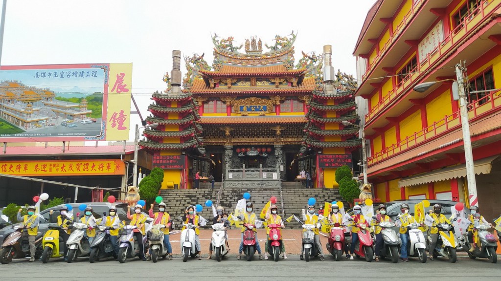 圖三:法稅改革聯盟志工以機車連在天公廟前合影,祈願天佑台灣法稅改革成功,將超徵的稅收還給人民。