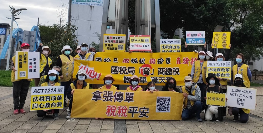 圖說一:法稅改革聯盟宣導「護人權 廢獎金 救冤案」,希望光復台灣賦稅人權。