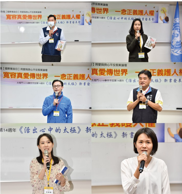 【記者 黃稚丞/新北報導】為響應聯合國「國際寬容日」,WPN世界民報、聯合國/NGO世界公民總會、太極門氣功養生學會、正大出版社等八個單位日前於新北市議會,舉辦《活出心中的太極》新書發表會暨《活出心中的太極》與《誰偷走了他們的青春》兩本暢銷書的贈書活動。多位立委、議員及里長親自或派代表參與盛會,呼籲全民站出來,一起維護民主法治與人權。