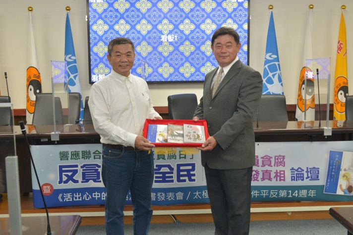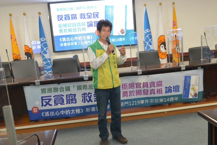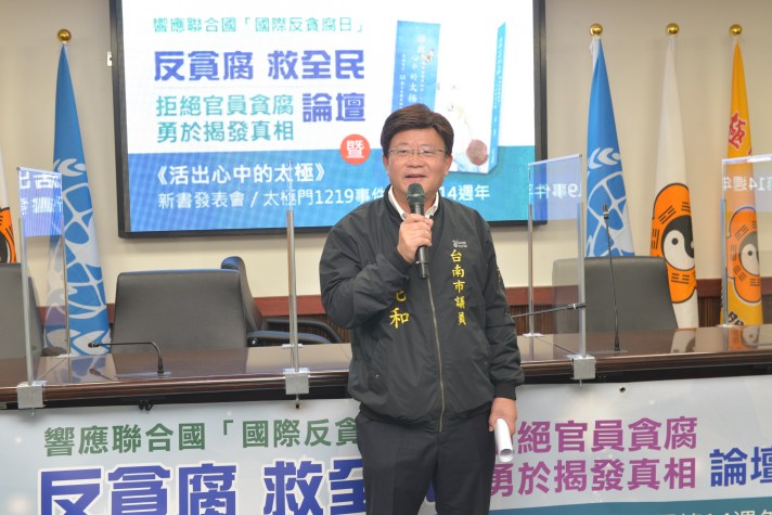 【記者蘇秋心/綜合報導】12月9日為「國際反貪腐日」,由WPN世界民報等8個民間團體主辦、台南市議會陳昆和議員合辦的「反貪腐救全民–拒絕官員貪腐,勇於揭發真相論壇暨《活出心中的太極》新書發表會」在台南市議會展開,並舉行《活出心中的太極》、《誰偷走了他們的青春》、《寒冬雜誌選集:台灣的太極門案件-邁向人權與宗教信仰自由之路》贈書儀式,現場許多各級民代與專家學者與會,呼籲政府力行反貪腐制度,勇於揭發真相,改革現存少數流氓官員貪腐問題,保障人民應有的基本人權。