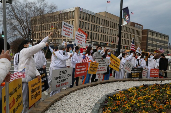 【記者Ellen Chen/華盛頓特區報導】2021年12月6日,來自全美各地與加拿大的太極門弟子代表將近60 人,再度齊聚在華盛頓特區的駐美國台北經濟文化代表處前,呼籲世人正視發生在台灣遭受人權迫害的太極門事件,希望駐美代表蕭美琴能轉達蔡英文總統,太極門期待真正落實轉型正義、人權保障及平反假案的訴求。來自俄亥俄州的大二學生Jessica Lu在受訪時悲憤表示,「太極門師徒已經為這案件奮戰25年了,比我在這個星球上生活的時間還要長!」