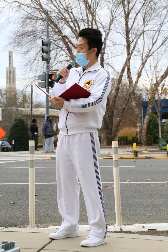 Jeff Chen代表全球太極門弟子宣讀全球太極門弟子共同聲明,並譴責侯寬仁檢察官和國稅局的違法行為:「太極門的文化、人權、思想與信仰自由在台灣遭受迫害長達1/4世紀,超過上萬個家庭遭受嚴重的迫害,斑斑血淚史,是台灣解嚴以來歷時最久、受害人數最多的重大案件,嚴重剝奪全球各地太極門弟子的信仰自由權利。」「在此,我們同聲譴責,不容許執行公權力者違背證據法則、違反正當法律程序,罔顧誠信、圖謀私利,危害人權,迫害宗教信仰自由,我們要求政府立即落實轉型正義、歸還太極門修行聖地。我們會堅持到底,直到公理與正義獲得彰顯,讓台灣成為真正民主、法治、自由與人權的燈塔。」