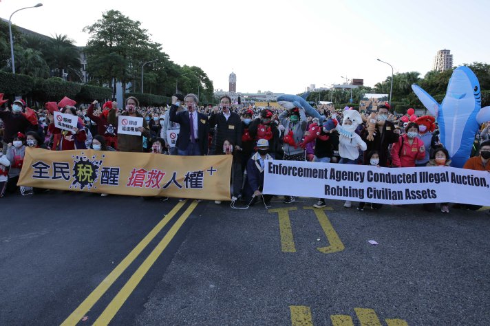 【記者李珊/台北報導】12月19日下午2點法稅改革聯盟、臺灣財經刑法研究學會等單位主辦的「全民稅醒 搶救人權Plus」號召大批民眾上凱道大遊行,活動端出海鮮痛風大餐—螃蟹、龍蝦、墨魚、章魚、魷魚、鯊魚等六種生猛海鮮,痛批台灣存在威權餘毒,少數無良官員和流氓官僚以各種黑心招數迫害人民,讓人民吃到痛風,痛苦不堪,司法稅法的受害者和稅災戶哀鴻遍野。現場多位受害者現身說法,金融科技專利王簡永松,獲得國內外近五十件專利,卻被稅務迫害至死,簡永松的太太特別到場控訴。學者稱為「法稅228」的太極門假案,被國際視為重要的宗教信仰迫害與人權迫害案,當天適逢太極門1219事件25週年,太極門海內外弟子特別發表「愛與良心守護真理 公理正義捍衛人權」共同聲明,盼全民一起捍衛賦稅人權!