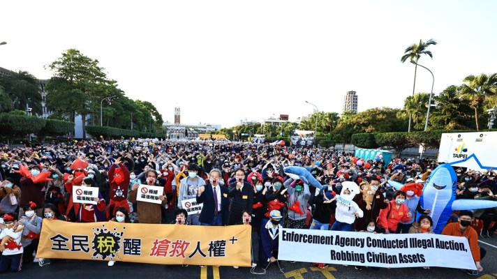 【記者陳智頡/台北報導】近兩年疫情肆虐,嚴重影響庶民經濟,服務業也現倒閉潮,但是國家財政卻逆勢超徵近4000億,創下歷史新高,加上年度新增欠稅欠費強制執行案,去年也來到新高1431萬件,不合理的濫稅現象引發民怨沸騰,法稅受災戶哀鴻遍野。法稅改革聯盟、臺灣財經刑法研究學會等單位,12月19日舉辦「全民稅醒,搶救人權PLUS」活動,號召全台民眾上凱道,並以各種生猛海鮮象徵威權政府帶給人民的法稅迫害,遊行隊伍繞行台北市,民代、專家學者也到場聲援,就連百歲人瑞也上凱道參與遊行,呼籲政府改善稅制,讓台灣民生經濟更好。現場參與及線上觀看直播人數約十五萬人,共同支持拒絕貪腐、反奴役、要人權的活動。