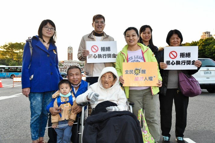 現場最高齡的民眾是現居在新北市的105歲黃阿嬤,她也跟在全國各地子孫一起到凱道,孫女黃小姐表示,他們兄弟姊妹來自全國各地,新竹、彰化、新北、台南等地包括阿嬤總共10人,一起到凱道呼籲政府進行稅改,因為他們家人與親戚中也常遇到亂課稅的問題,一位是買賣房屋沒賺錢,卻遭國稅局恣意減去部分購屋成本,造成買賣有盈餘的假象而誆稱需要課稅,幸好求助法盟協助,最後國稅局才沒有開出違法稅單;另外是在經商的親戚,莫名被課200萬的稅,因為急著出國經商,發現已被限制出境,不得不趕快繳清。他們真的覺得台灣稅災很氾濫,就帶著阿嬤一起走出來表達心意,全程跟著一起遊行,希望政府可以聽到人民的心聲,能夠真正把稅制問題解決掉,要讓台灣的經濟跟民生越來越好。